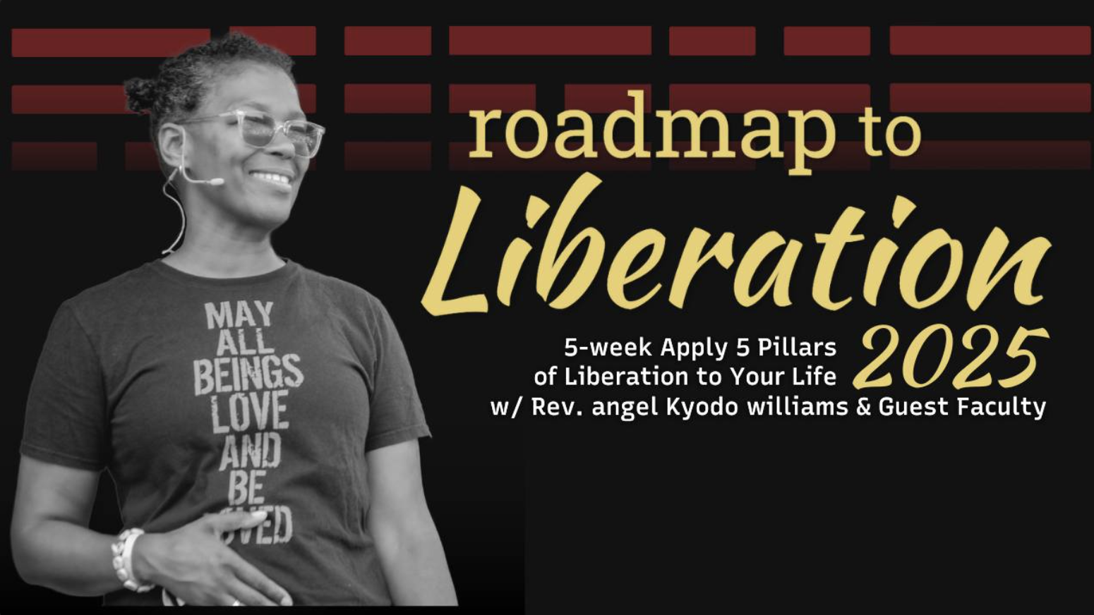 Roadmap to Liberation R2L (Applications I & II) Certificate Program: A 6 week deep dive with weekly LIVE sessions, a virtual workbook + learning collective. Designed by Rev angel Kyodo Williams. R2L is a 5-pillar Framework for Liberation in your own lives, at this historical moment we find ourselves in.